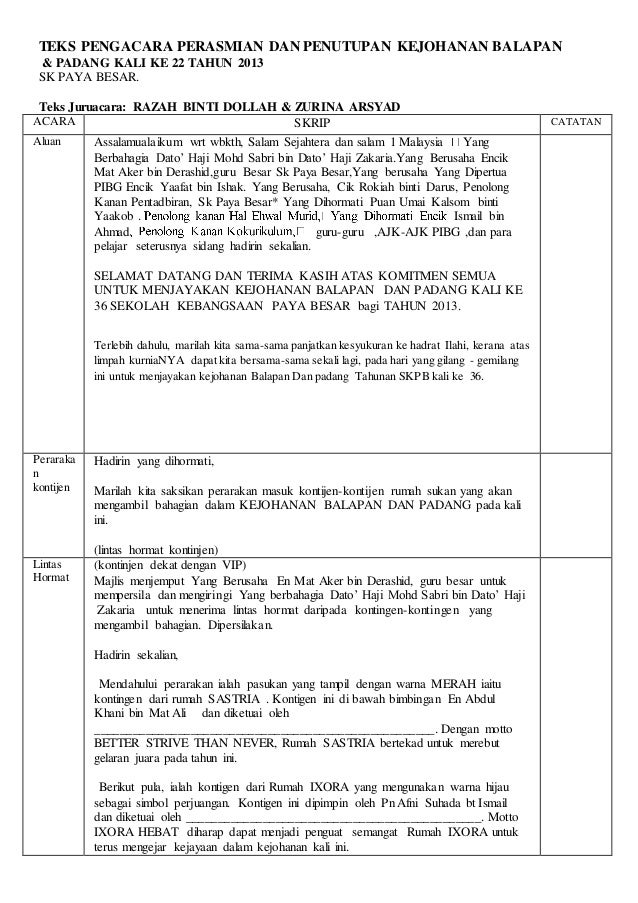 Teks Pengacara Perasmian Dan Penutupan Kejohanan Sukan via www.slideshare.net